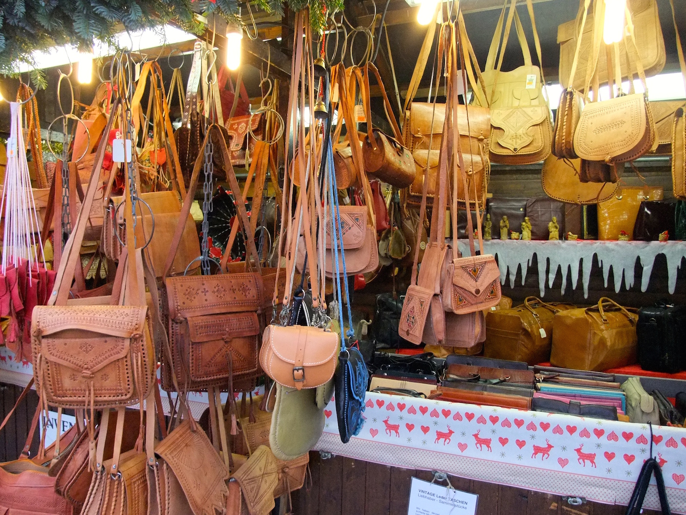 You can also find tons of hats, gloves, leather wallets and bags, silver jewelry, embroidered tablecloths, mugs and other tableware, ceramic candle-holders, cured sausages, liqueurs, jams, soaps, pots and pans, wooden and silicon kitchen utensils, vegetable peelers, and more. No matter what you're looking for, don't forget to look up. All of the stalls have elaborate decorations from giant wooden Christmas pyramids to stuffed reindeer pulling Santa's sleigh, all to get you into the Christmas spirit.