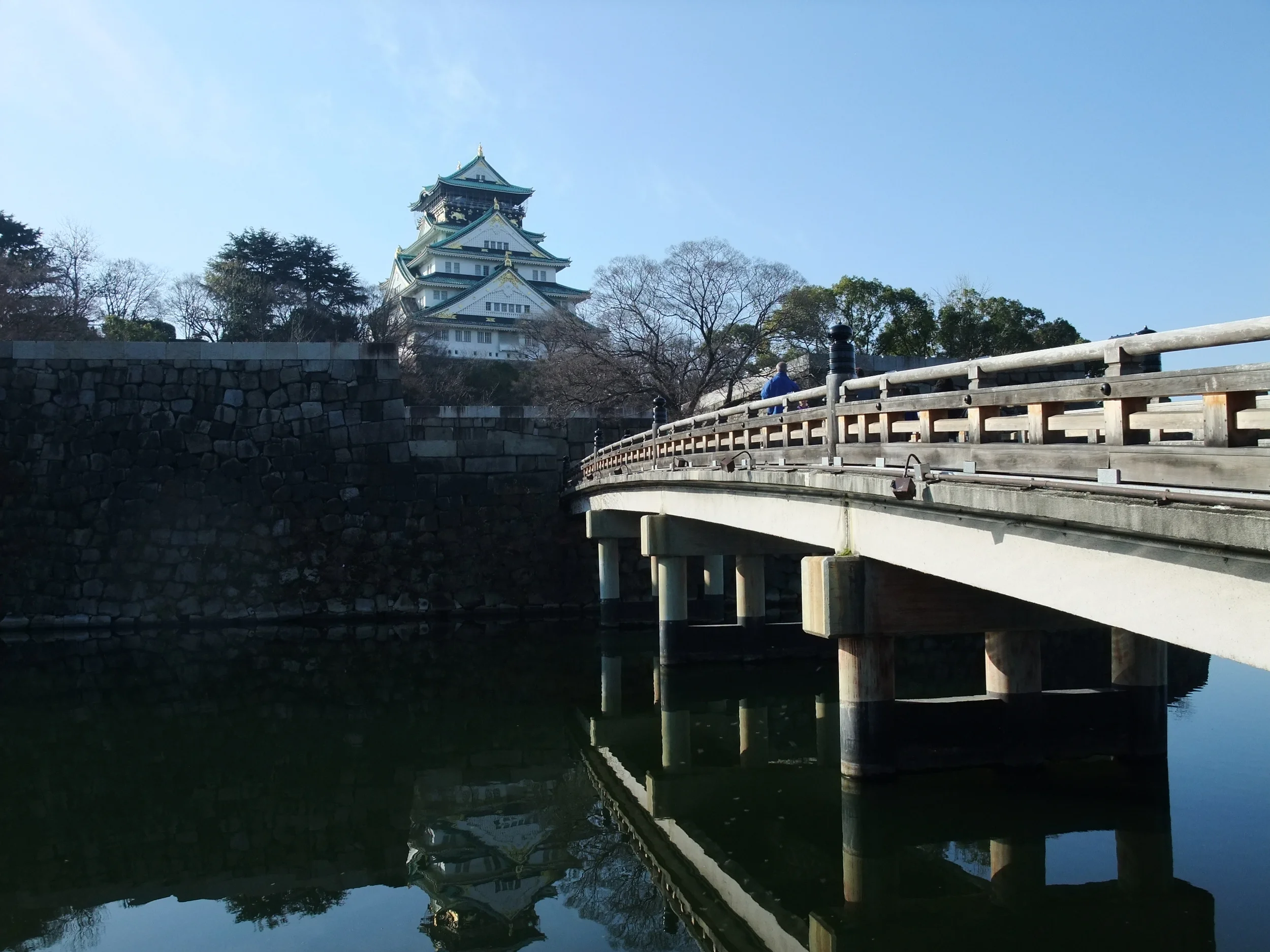 Osaka Castle - I was really excited to see Ōsaka-jō, because it was my first Eastern-style castle. I'm used to the towering turrets and spiraling staircases of German castles, but Ōsaka-jō was a solidly built, eight-story structure on a well-fortified plot of land surrounded by a wide moat. We paid to go inside, which offered a panoramic view of Osaka and included a brief history of the castle and some of the shōguns who lived there. I was, however, somewhat disappointed not to see more rooms in the style they would have been during the castle's heyday, since I don't really have a good mental picture of that kind of interior decoration. Nevertheless, I recommend going inside if for nothing else than the view.