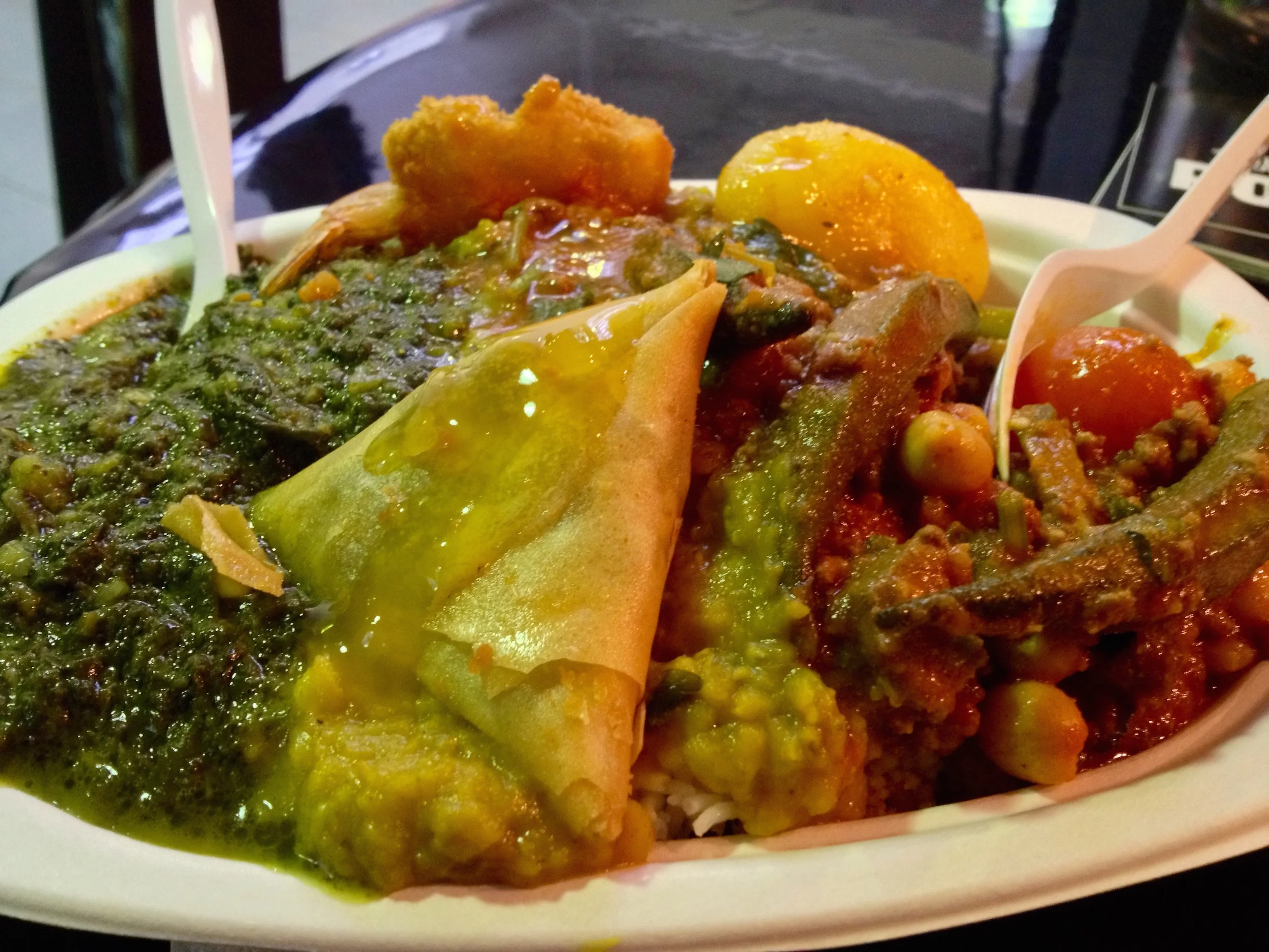 Still not quite full, we decided to split the Mixed Platter at Madagascar. I haven't been there yet, but they had business cards for Ambiente Africa, which I have tried and liked. The mixed platter had a combination of spinach, lentils, and chicken with okra, all in their own sauces and served over rice and couscous. the lentils were especially nice, with a creamy texture and a good amount of spice. We also got one samosa and one coconut shrimp to try. It's definitely another restaurant that I've added to my list to try.