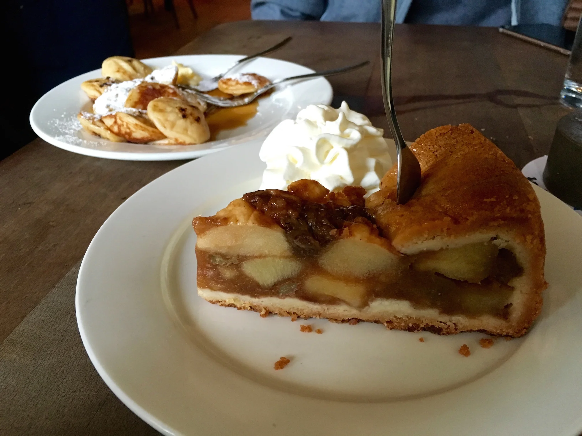 Not quite satisfied with our first order, we decided to add the sauerkraut and mashed potato with jamon Serrano shavings, smoked duck, and gravy of port wine and the mini "kapsalon" (a Dutch dish with fries and grilled cheese) with chicken and everything else on top. I'm so glad we saved room for them, especially the "kapsalon". I know the number of fries we had was probably overkill, but who can resist fries with grilled cheese on top? Last but not least, we ended our meal with the Spekkoek (layered spiced cake). The cake was cut into five slices of about a centimeter in thickness, each one moist and perfectly spiced. It was a delicious way to end our indulgent meal.